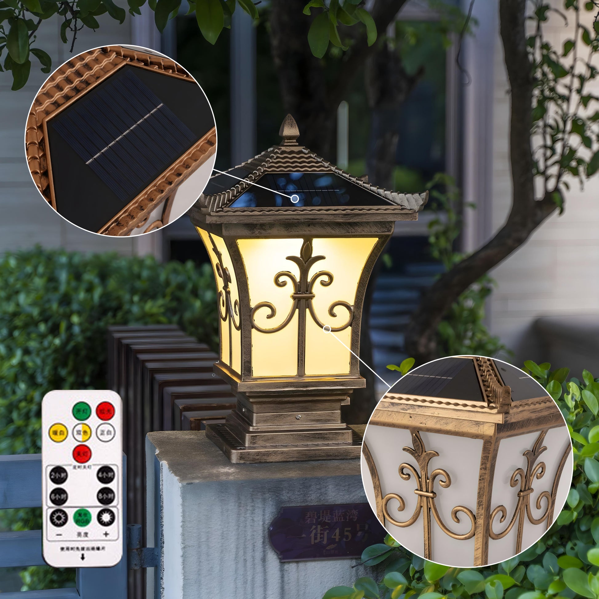 Vintage Scroll Solar Powered Post Light